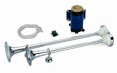 Çiftli havalı korna yüksek kalitede pirinç krome boruludur. Elektirikli kompresörü ve montaj aksesuarları ile birliktedir. Sesi uyumlu ve güçlüdür.dB(A) (1m) 111