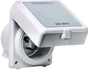 | Hubbell 220V standart marin priz UV ışınlarına mukavim cam takviyeli plastik gövde, kolay açılan su geçirmez kapak. |